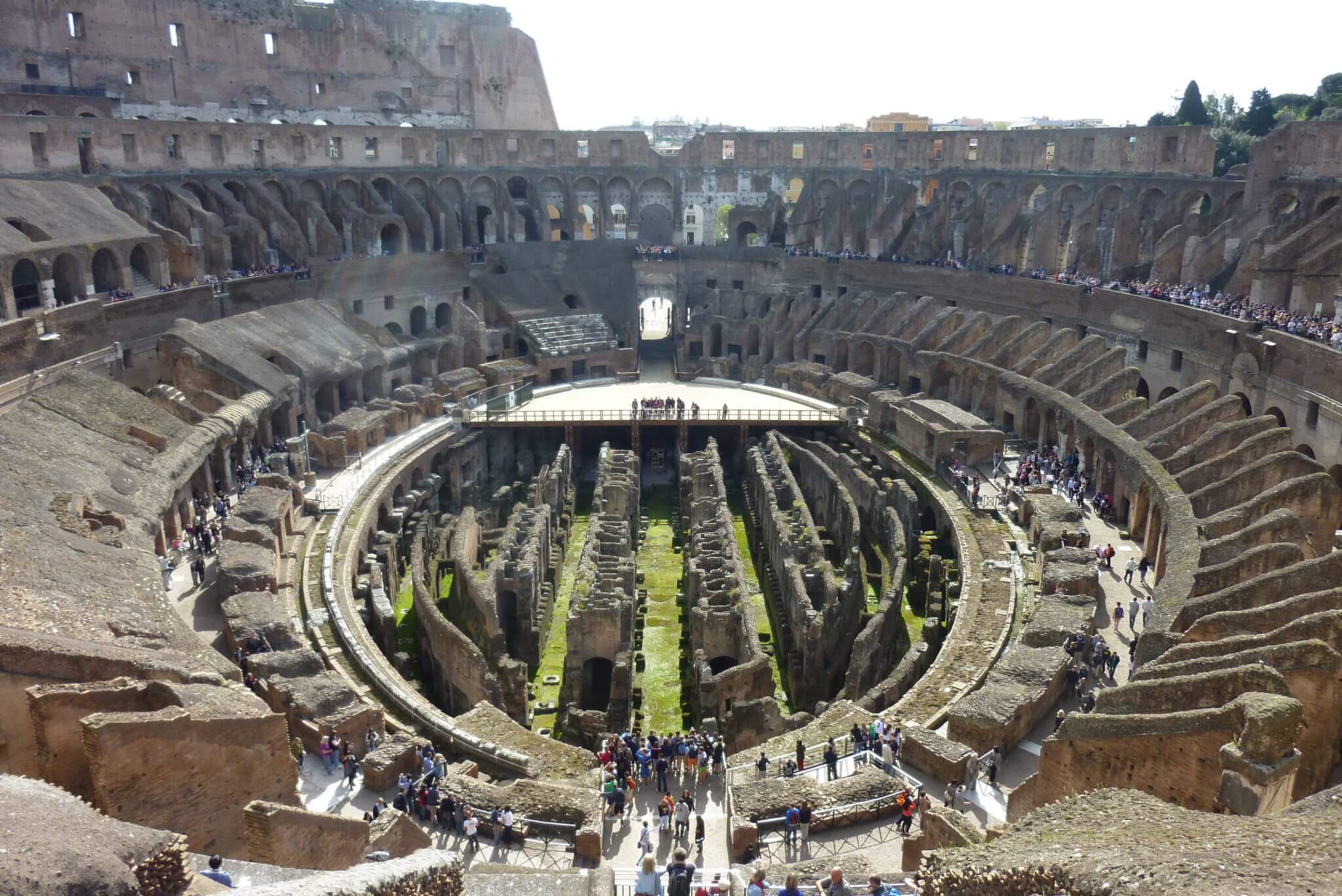 The Colosseum, however, comprises 3 tiers. The ground level used by the Gladiators under the original arena floor commonly referred to as the the utility system, the middle tier used by the general public and the one open daily to visitors today plus an upper tier that offers true panoramic views over the arena floor.