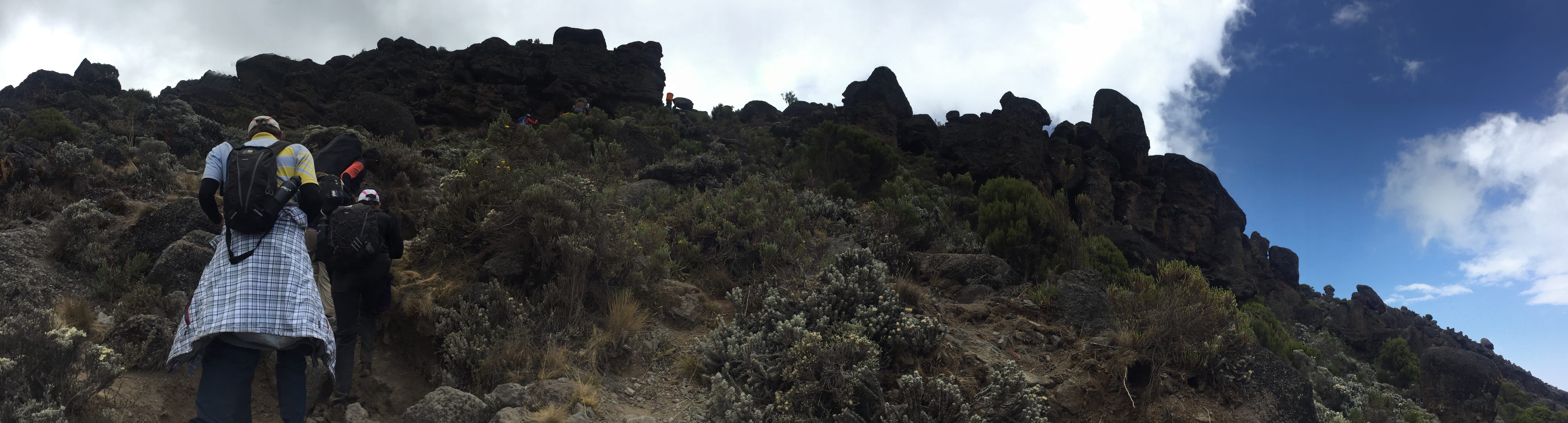 Looking around once the thick cloud cover had moved on and thinned out, the landscape was a stark contrast to this morning where we would always be able to make out a giant senecio or giant groundsels in the distance and a small scattering of shrubs or the cheerful yellow flowers of Asteraceae around some of the larger boulders looking for shelter. Since leaving Karanga Campsite there was nothing but bare rock all around us. Testament to the harsh and changeable conditions at this height on the mountain.