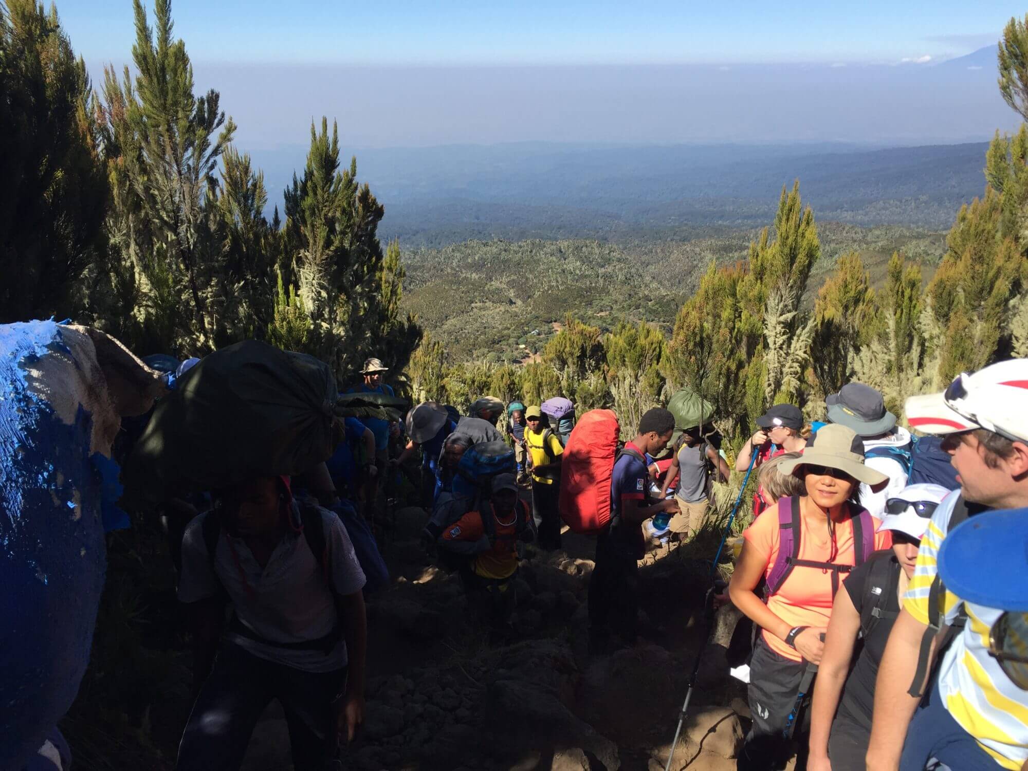 The trail from Machame Camp was snaking its way down the ridge far into the distance.