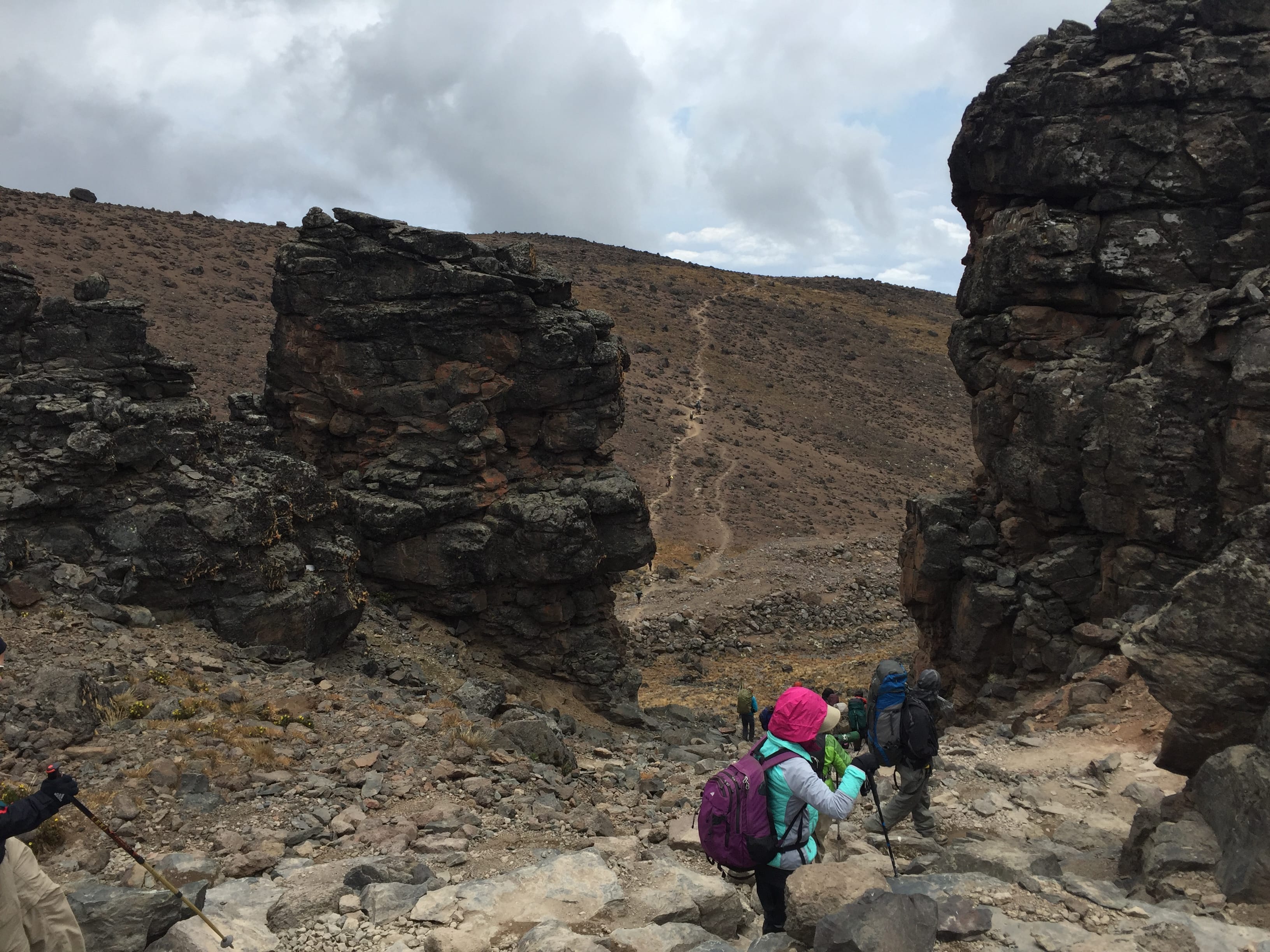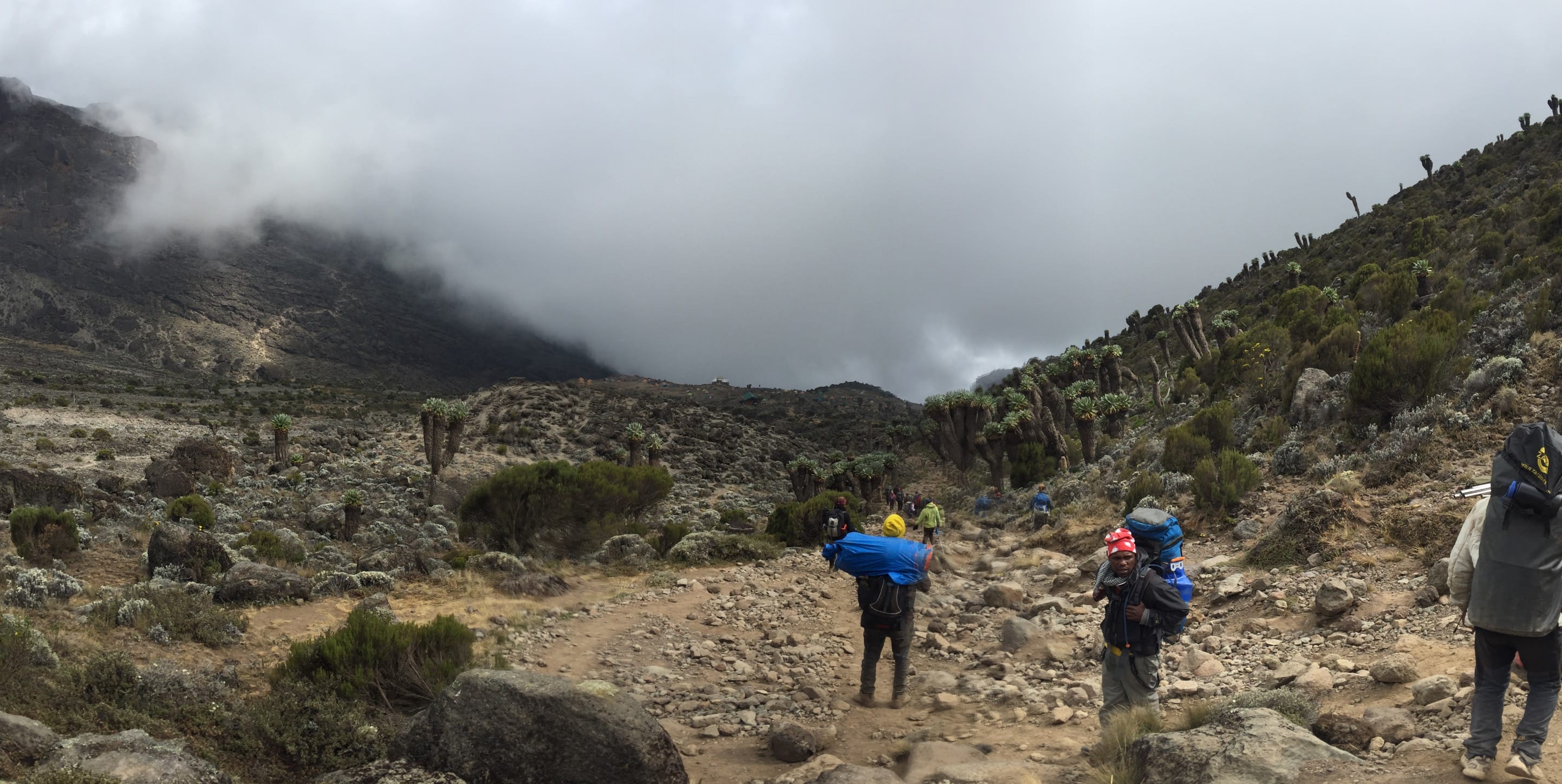 With breakfast out of the way quickly, we were soon packed and on our way. One of the most important days for acclimatization, today we would spend the first part of the day getting up to the Lava Tower at 4,600 meters before descending to the Barranco Camp only 50 meters higher than we were currently via part of the Southern Circuit. It at first seems such a waste to expend all that energy to get up to 4,600 meters only to come back down to about the same height again but it is very important for our bodies to get used to the thinning atmosphere. On summit night you will be very, very thankful for today but 10 minutes in and barely out of camp I was feeling like the Lava Tower was going to be my undoing.