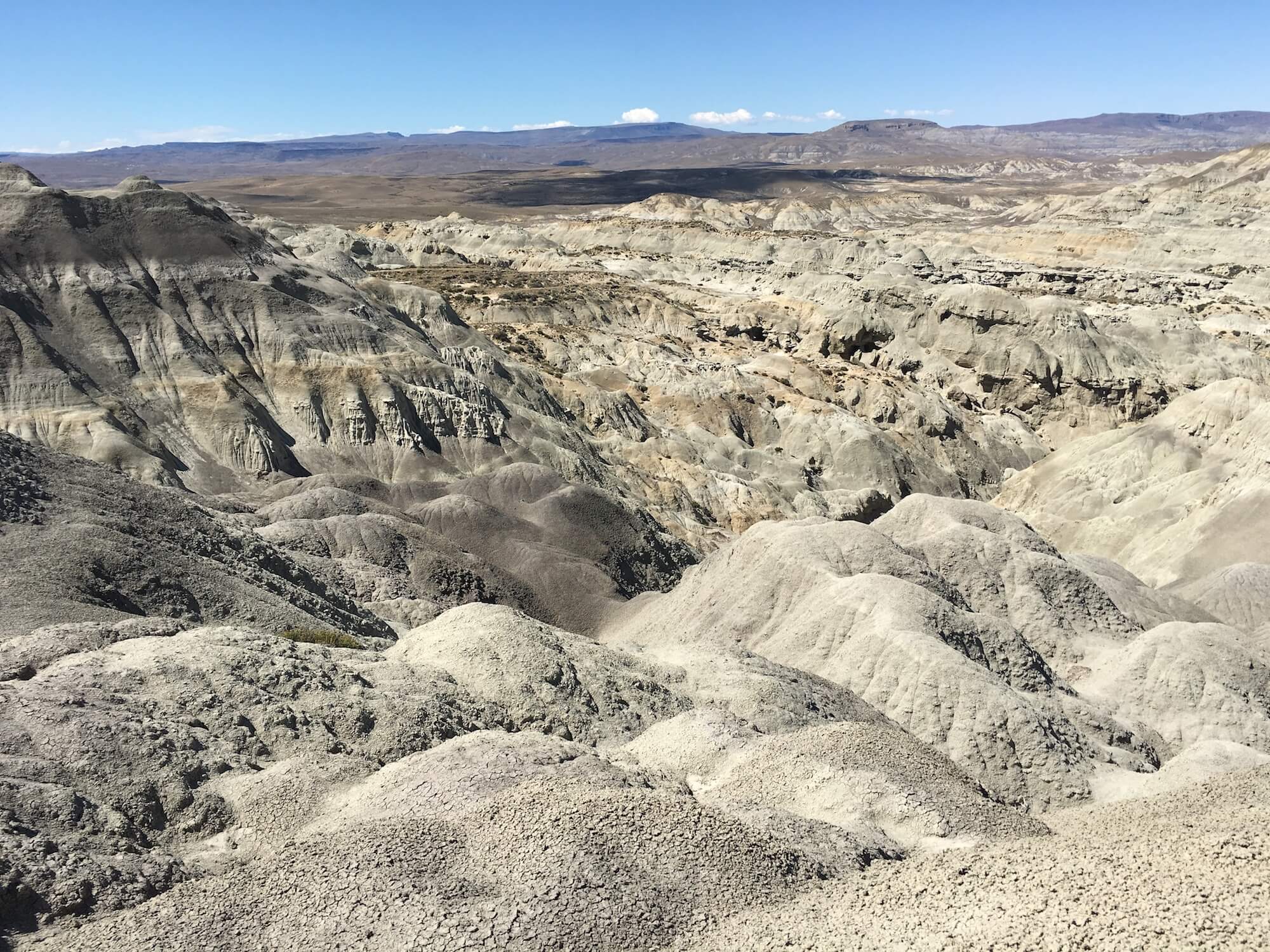 Turning onto a dirt track guarded by a solitary gate with a padlock, you are 10km away from starting your trek. You will feel every inch of those 10km as you gingerly make your way along the pot holed track to the start point of the walk along an an unassuming somewhat windswept hill top ridge. This wouldn’t be the Patagonian Steppe without a little breeze after all. Before descending into the canyons admire the backdrop of the mighty Andes and, on a clear day, Mount Fitzroy towering over the tourist town of El Chalten.