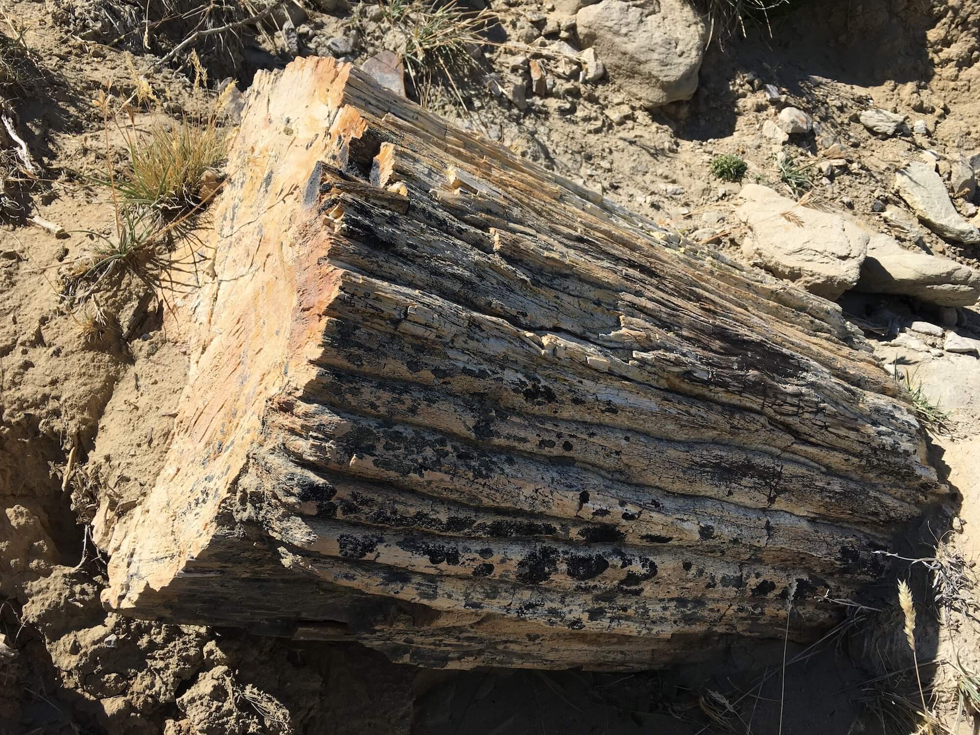 The trees aren’t the only thing that have been turned into stone in the valley. This petrified Brontosaurus thigh bone stands out against a much more recent mammals thigh bone for scale.