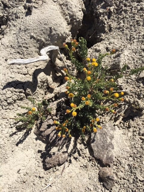 Dotted sparingly amongst the dust and fossils there is some sign of life in the form of small vibrant green shrubs. There is no ground water here, if any rain falls it almost instantly evaporates. The plants instead have adapted to use the early morning mist that shrouds the area before the sun burns it off.