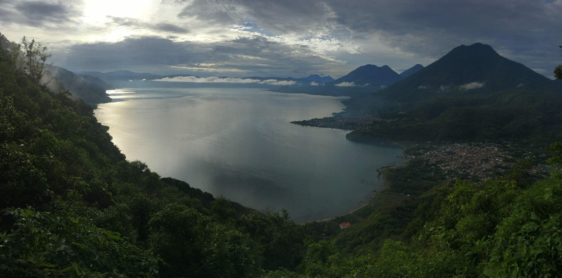 Looking out over San Juan la Laguna and San Pedro la Laguna. The Pacaya Volcano near Antigua rumbles in the background. 2 days after this photo the area was hit with a 6.8 magnitude earthquake in June 2017.