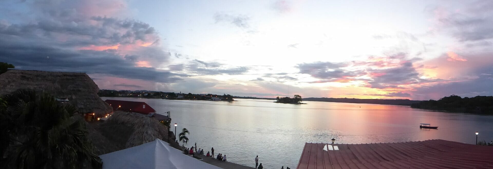 Most visitors choose to visit Tikal as part of a longer stay in the area, usually basing themselves in one of the hotels in the picturesque island of Flores in the western end of the largest lake in Guatemala, Lake Peten Itza. The island is small, you can walk round it in 15 minutes but with some delightful restaurants and bars to go along with the equally beautiful views and sunsets, a couple of days relaxing on the riviera are a perfect contrast to a day exploring the ruins of Tikal.