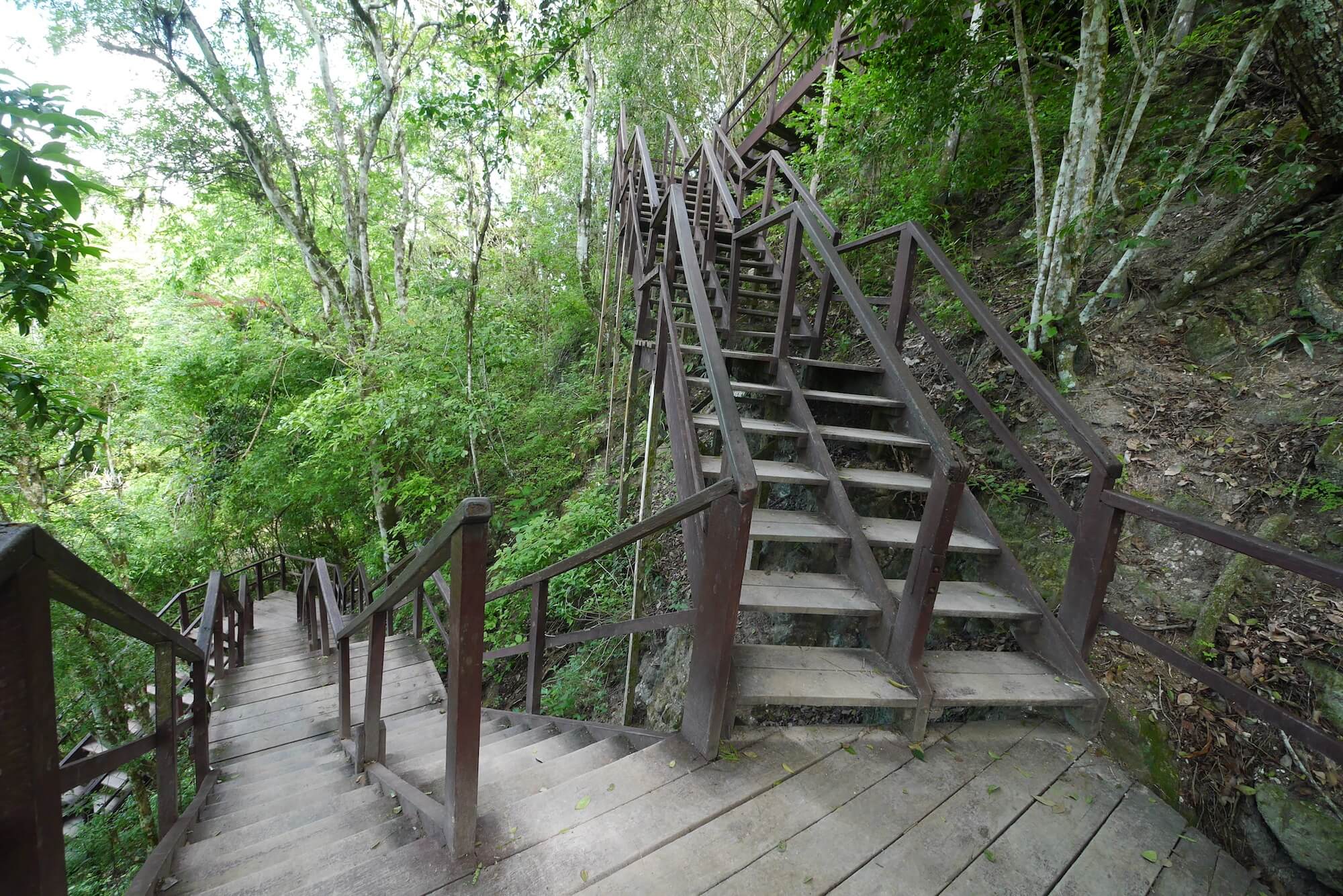 All of a sudden Temple IV is on you but you may not realise it. The top of the comb is only just barely visible as you emerge from the thick undergrowth. To aide restoration efforts while still giving visitors the opportunity to get the view that many come here to see, a wooden staircase has been erected off to the west side. They pyramid stands 65 meters high. It is currently the tallest mayan structure in the world. There is a small shaded seating area to the left near the base of the stairs for anyone that would prefer not to climb.