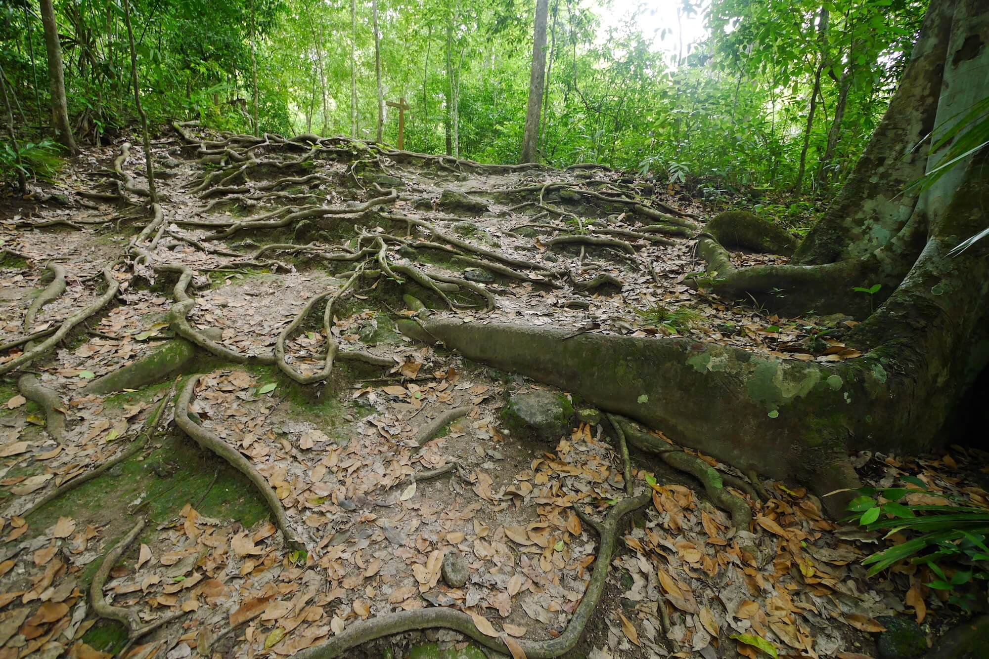 The trails in Tikal are littered with the root systems of trees that can’t penetrate down so fill out instead to get stability. Watch your footing!