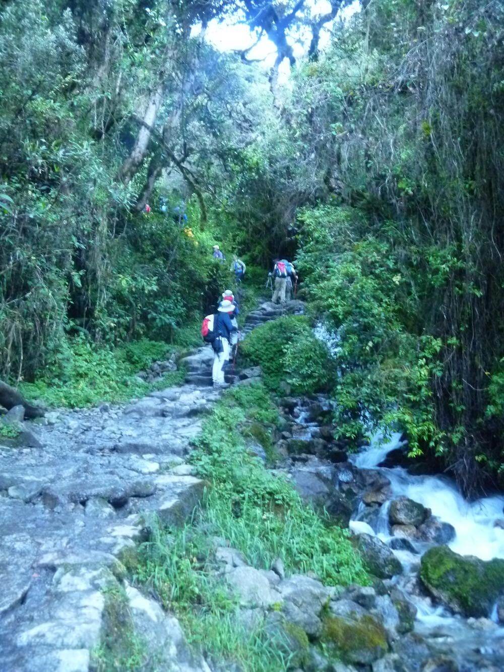 With our camp sitting at 3,000m we knew we were going to be in for a tough day. Day 2 on the Inca Trail is widely regarded as the toughest of all the days. This mornings challenge is getting up to, and over the highest point on the trek, Warmiwañusca, also referred to as Dead Woman’s Pass at 4,200m (13,860ft), because of the profile the mountains it looks like a woman lying on her back. While the going is steep and gets gradually steeper as you ascend it’s not that unbearable. The key to surviving the altitude it so take it slow and steady. By the end of today’s 12km trek you will have gained 1200m in altitude then lost 2000m to get to the next camp at Paqaymayo.